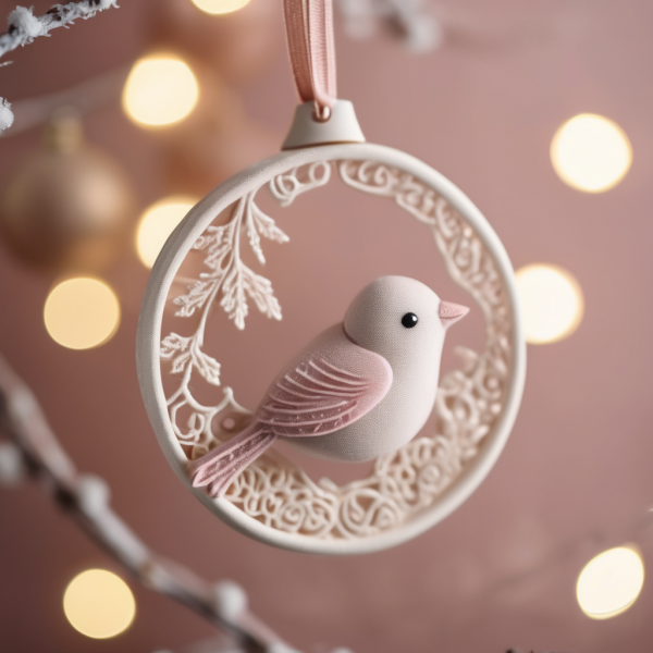 13. Your delicate lace-impressed bird ornament is ready to decorate your tree or gift.